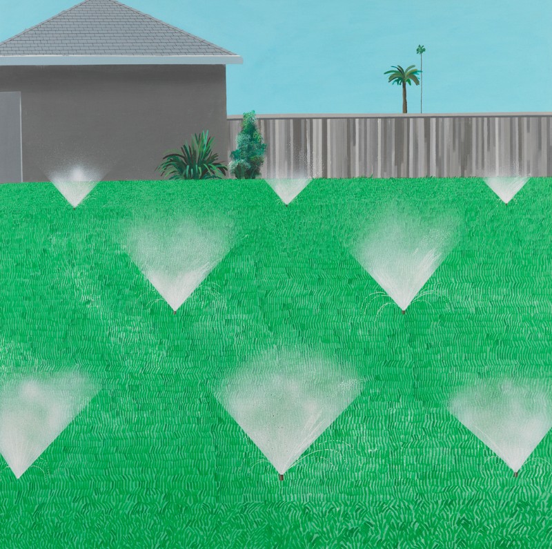 David Hockney (1937-): A Lawn Being Sprinkled (1967)