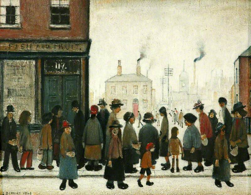 Leslie Stephen Lowry (1887-1976): Waiting for the Shop to Open (1943). Manchester Art Gallery