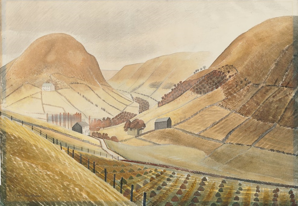 Eric Ravilious (1903-42): Corn Stooks and Farmsteads - Hill Farm, Capel-yffin (1938). Private collection
