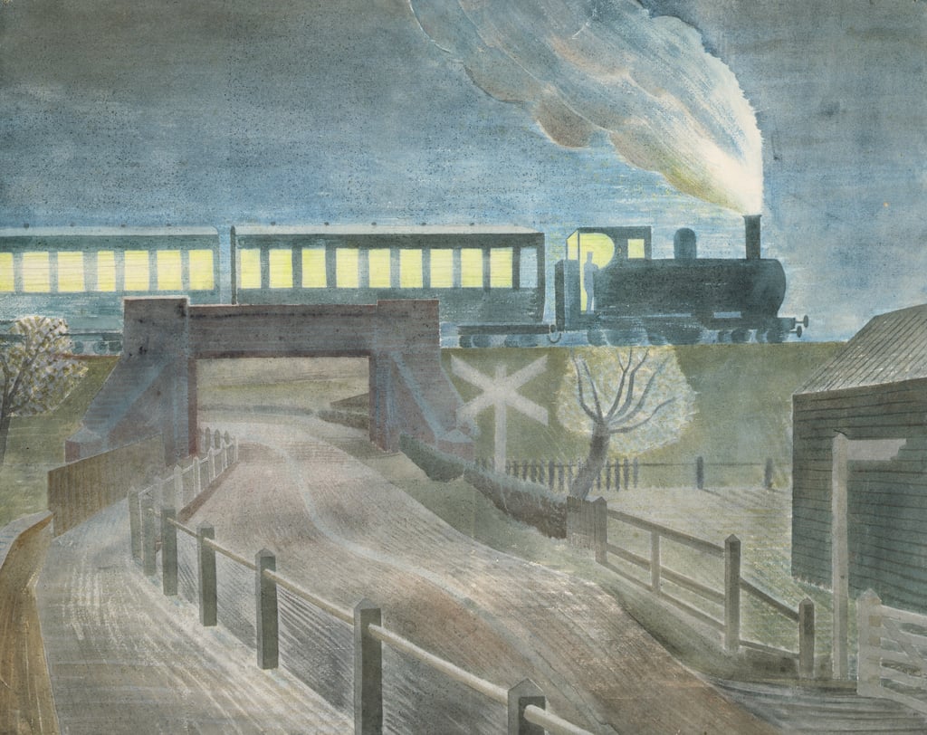 Eric Ravilious (1903-42): Train Going over a Bridge at Night (Undated). Private collection