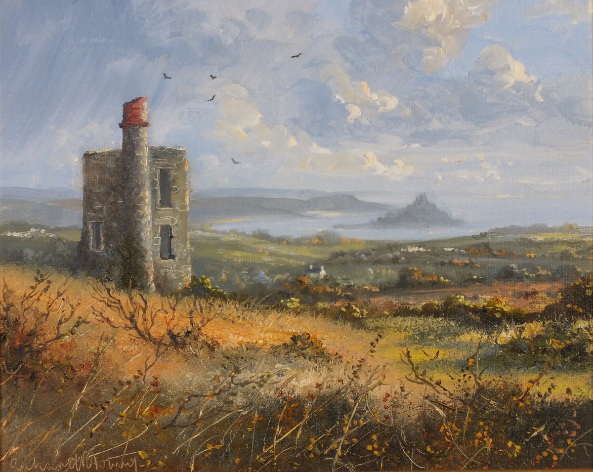 Richard Blowey (1947-): Cornish Engine House above Mounts Bay