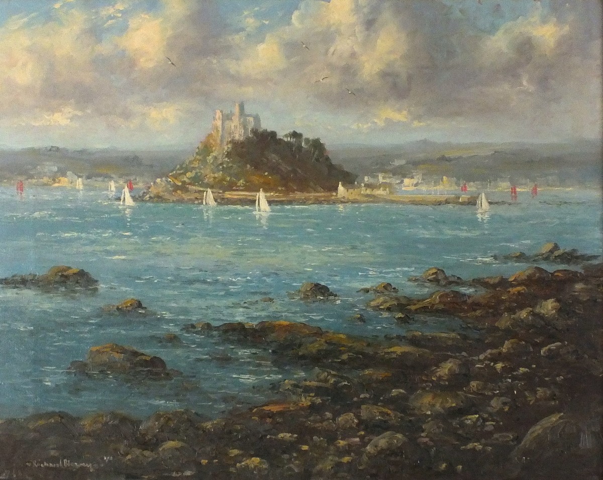Richard Blowey (1947-): Sailing Boats off St Michael's Mount