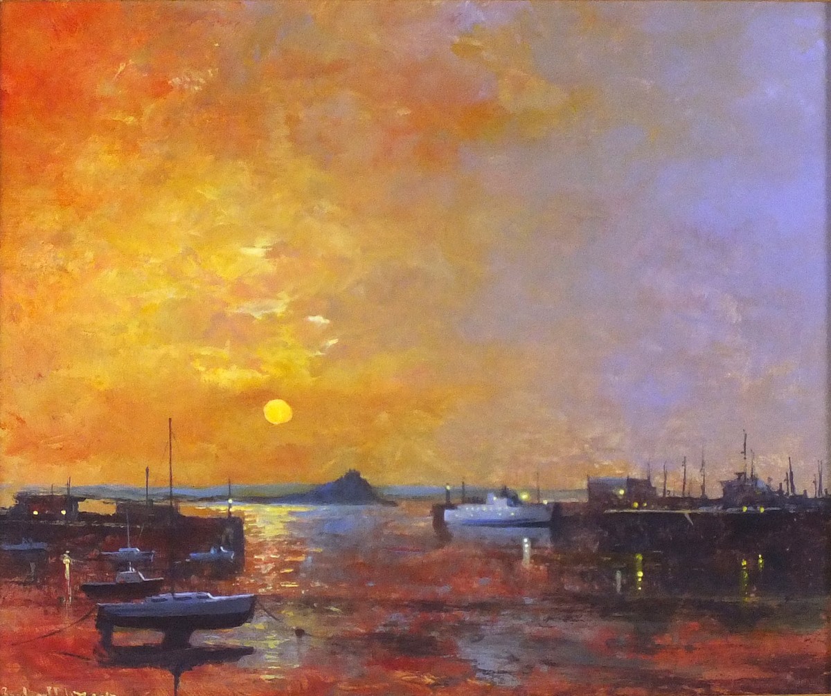 Richard Blowey (1947-): Sunrise, Penzance Harbour