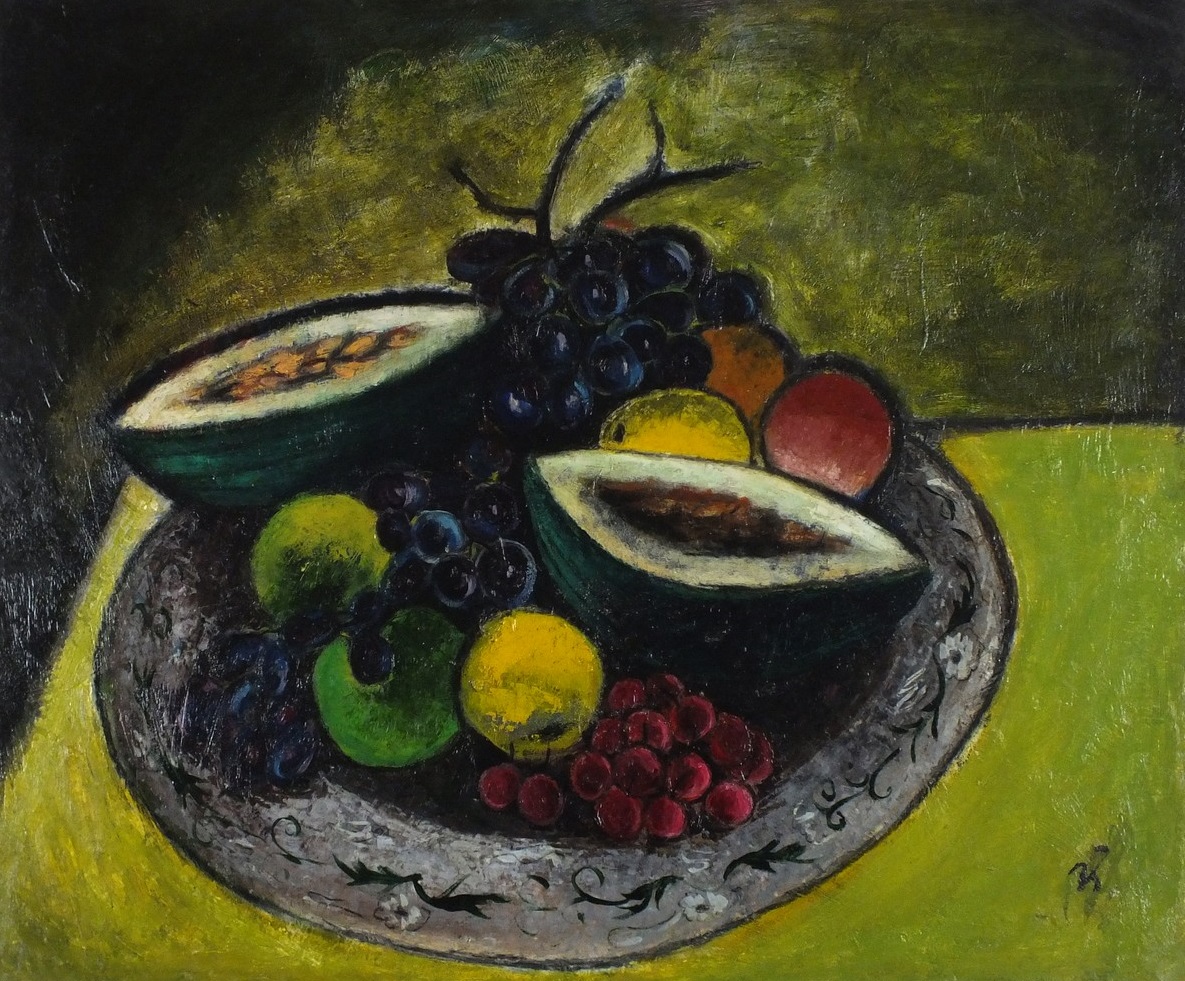 Joan Gillchrest (1918-2008): A Plate of Water Melon, Grapes & Apples (1957)