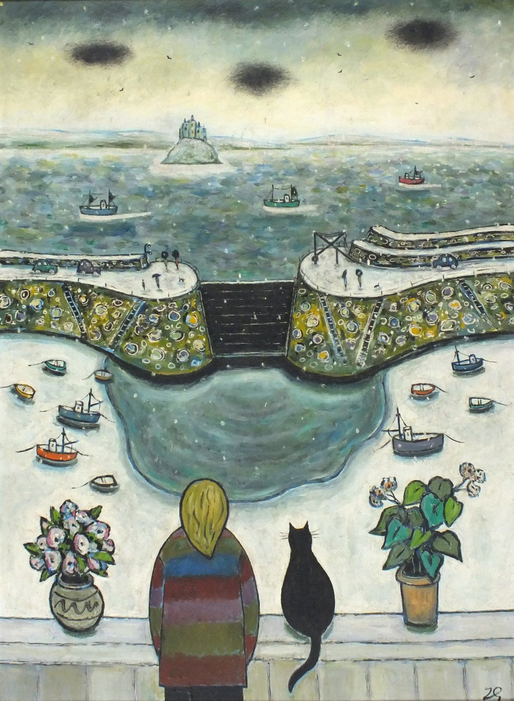 Joan Gillchrest (1918-2008): Looking at the Snow, Mousehole Harbour from Old Hill