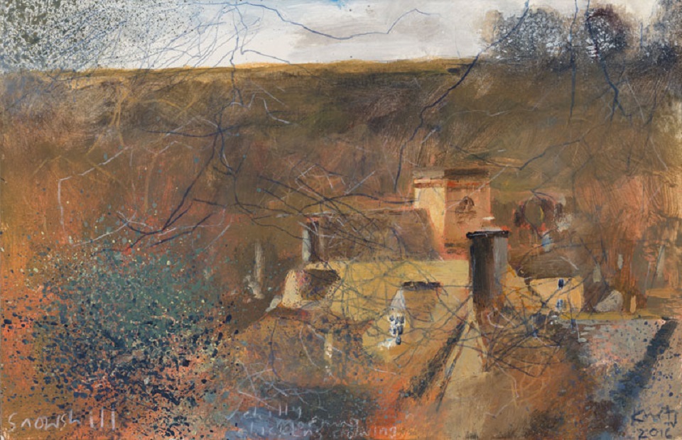Kurt Jackson (1961-): Chilly morning, chickens crowing (2016). Private collection