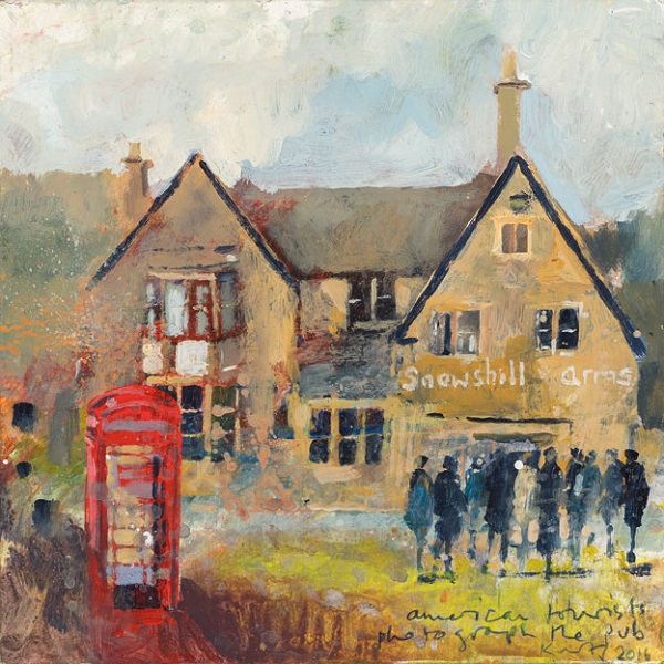 Kurt Jackson (1961-): American tourists photograph the pub (2016). Private collection