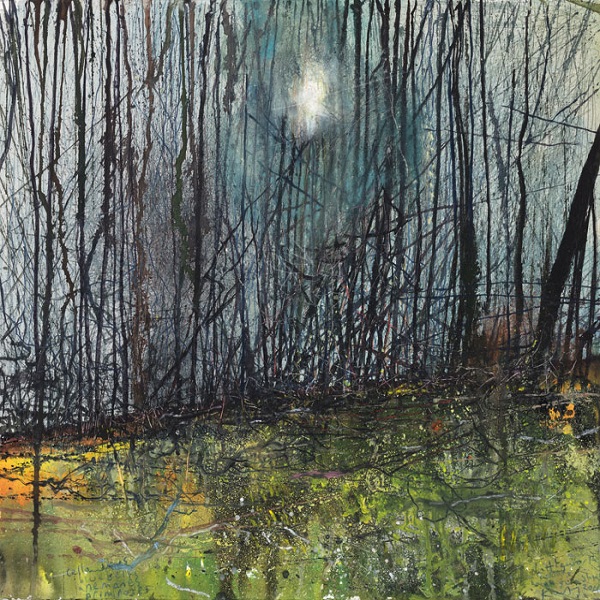Kurt Jackson (1961-): Celandines, bluebells, anemones, primroses. Weak sunshine (2016). Private collection