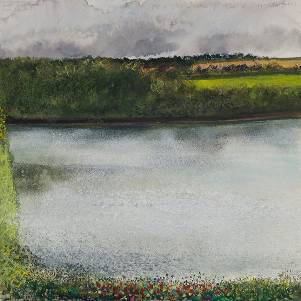 Kurt Jackson (1961-): Mr and Mrs Swan and their four cygnets pass (2018)