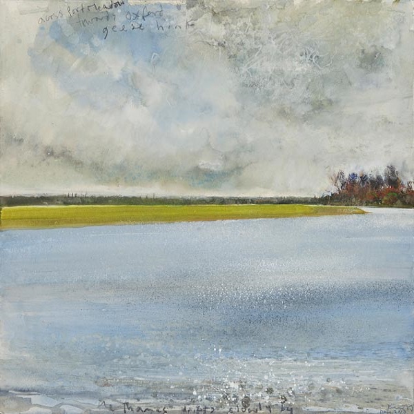 Kurt Jackson (1961-): Across Port Meadow towards Oxford. Geese honk. The Thames drifts slowly by (2013)