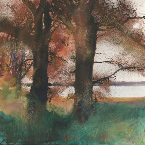 Kurt Jackson (1961-): Stour oaks, burbling waders out on the mud flats, Wrabness (2016). Private collection
