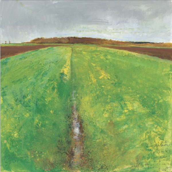 Kurt Jackson (1961-): Cowslips, dandelions and skylarks, between two fields the Stour is born (2018). Private collection