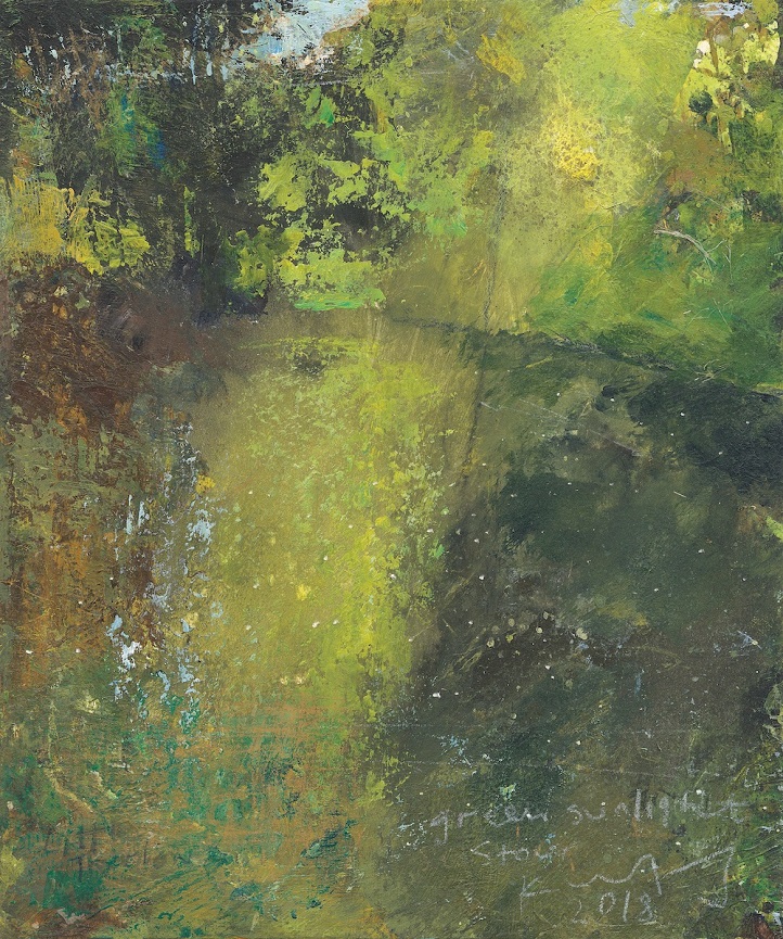 Kurt Jackson (1961-): Green sunlight, Stour, Little Thurlow (2018). Private collection