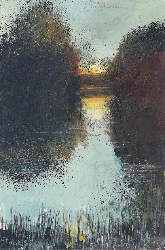 Kurt Jackson (1961-): Dedham upstream sun down (2018). Private collection