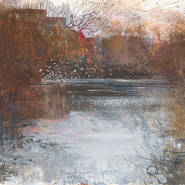 Kurt Jackson (1961-): Dedham winter millpond, gulls and ducks (2019). Private collection