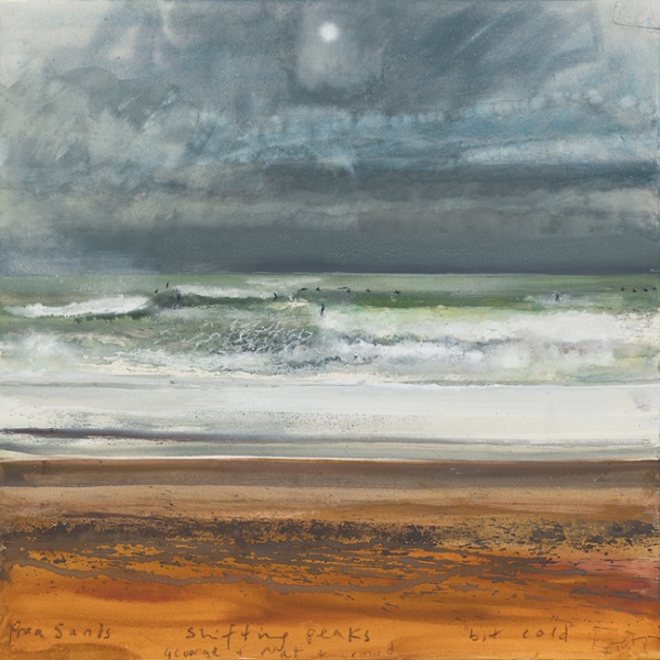 Kurt Jackson (1961-): Praa Sands, shifting peaks. Bit cold (2016)