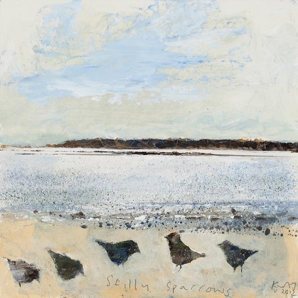 Kurt Jackson (1961-): Scilly sparrows (2012). Private collection
