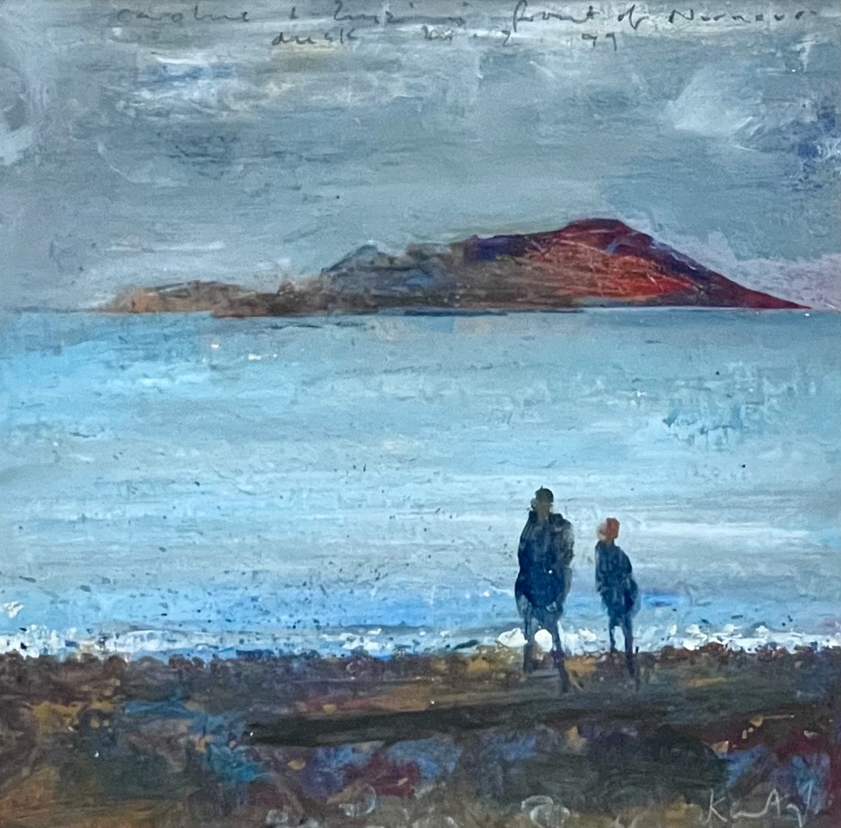 Kurt Jackson (1961-): Caroline & Zinzi in front of Nornour, St Martins, Scilly (1999)<