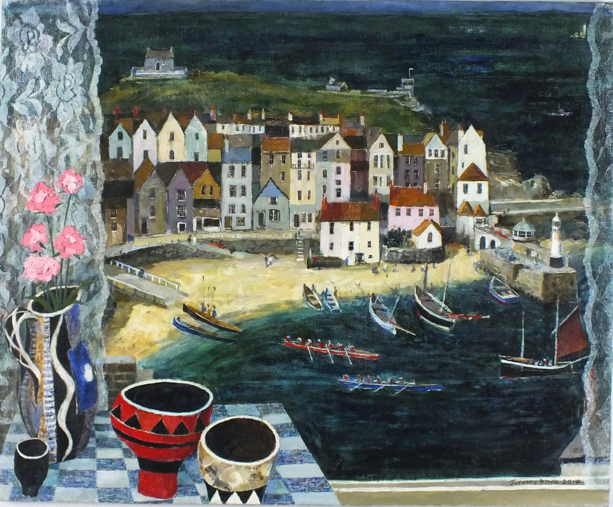 Jeremy King (1933-2020): Window Sill - Still Life with view of St.Ives (2017)