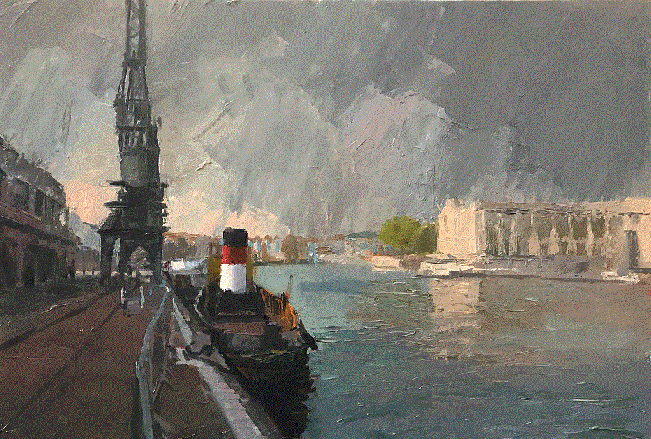 Neil Pinkett (1958-): Dockside Cranes, Bristol