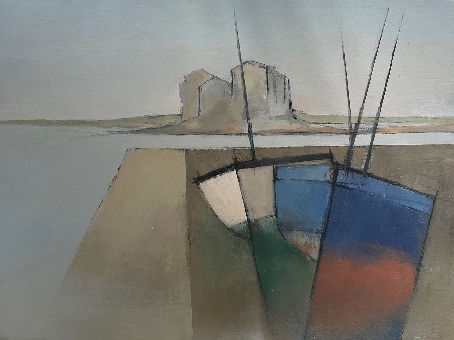 Michael Praed (1941-): Blue & White Fishing Boats (1997)