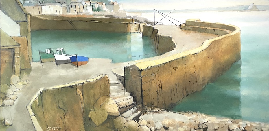 Michael Praed (1941-): Mousehole Harbour With The Crane