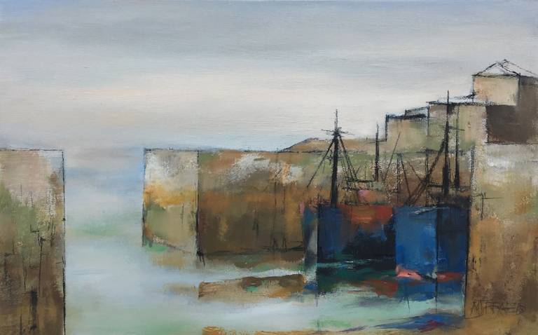 Michael Praed (1941-): Harbour Shapes with Reflections