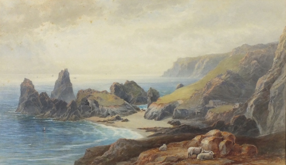 Thomas Hart (1830-1916)): Sheep Grazing on the Cliffs above Kynance Cove (1873)