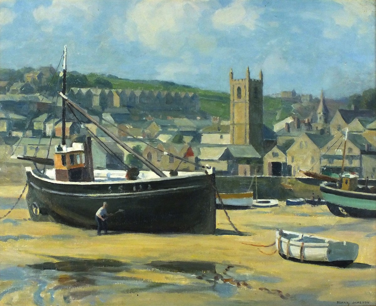 Frank Jameson (1898-1968): Scrubbing the Hull - St Ives Harbour at Low Tide