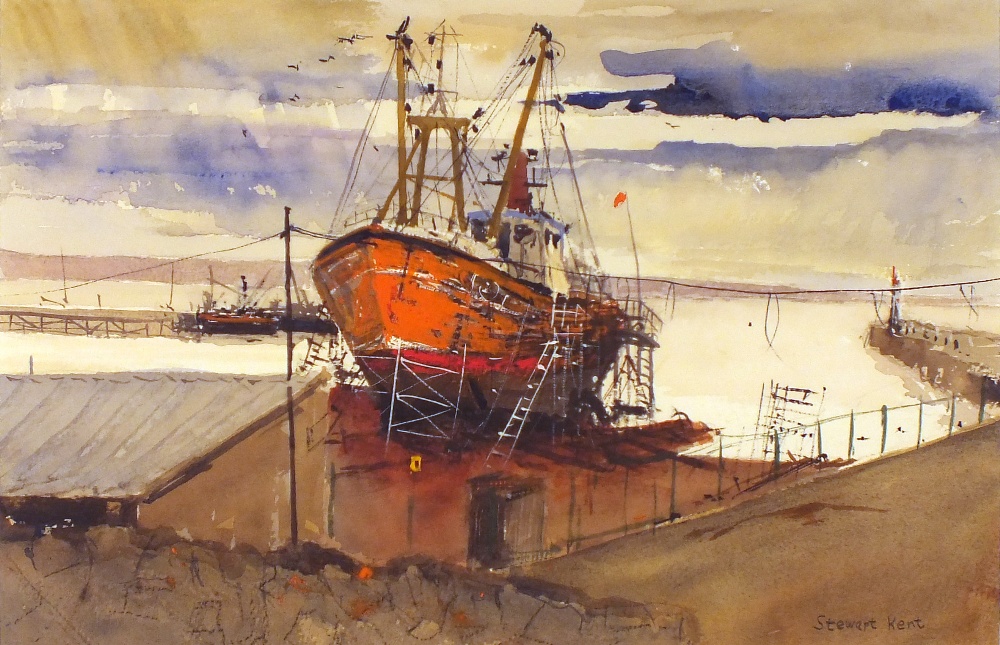Stewart Kent (1946-): Under Repair: Beam Trawler, Newlyn