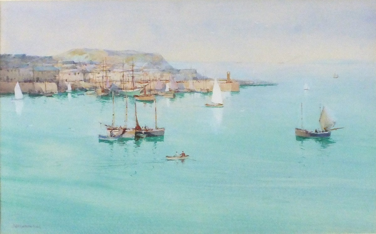 John Baragwanath King (1864-1939): View across St Ives Harbour with Turquoise Sea & Sailing Boats