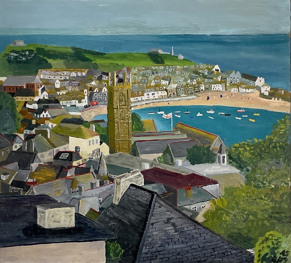 Andrew Stewart Weir (1948-): St Ives Harbour and Roof Tops, from the Bellyars