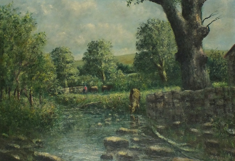 Michael Strang (1942-2021): Cattle in a Meadow beside a Stream (1980)