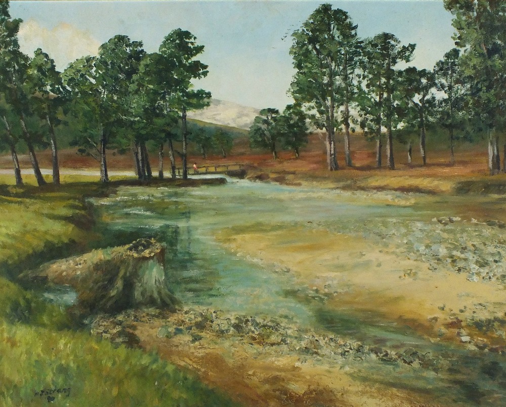 Michael Strang (1942-2021): Tree-lined River Landscape (1980)