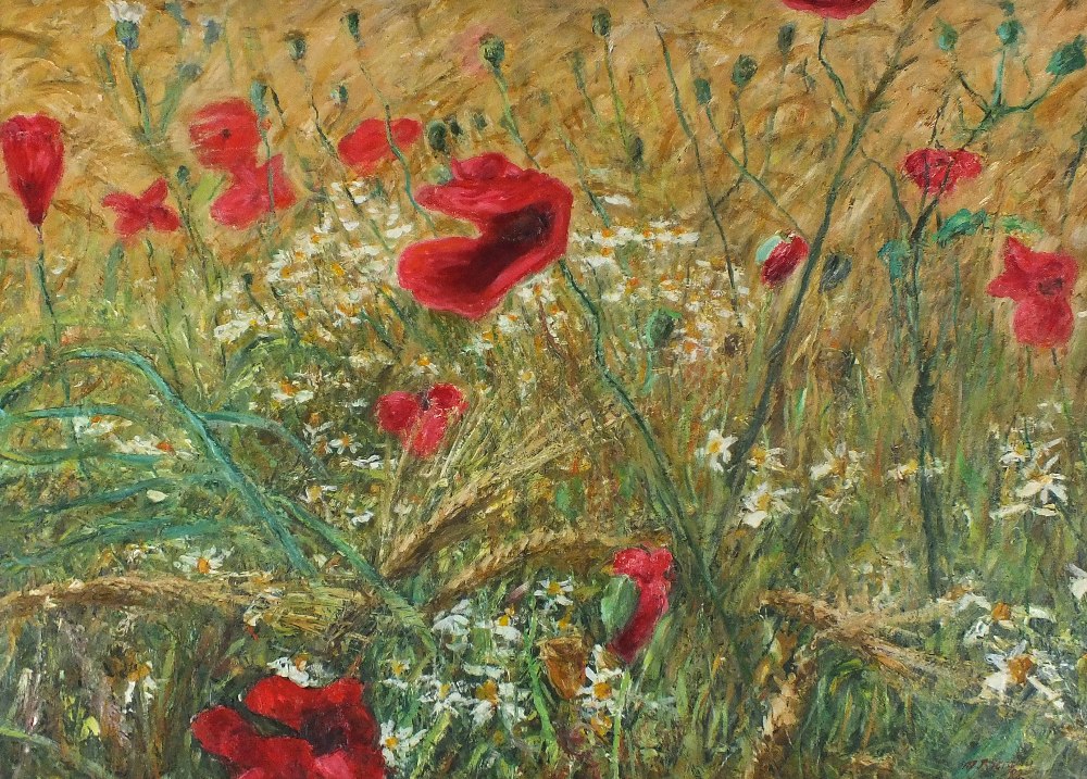 Michael Strang (1942-2021): Poppies on the Edge of a Barley Field (1982)