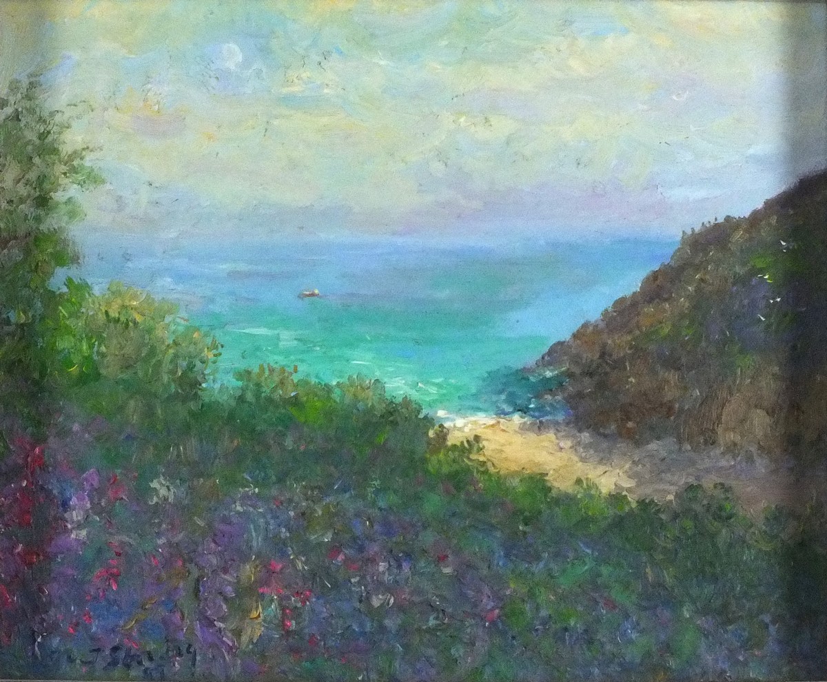 Michael Strang (1942-2021): Porthcurno - Early Evening Light, Rising Moon