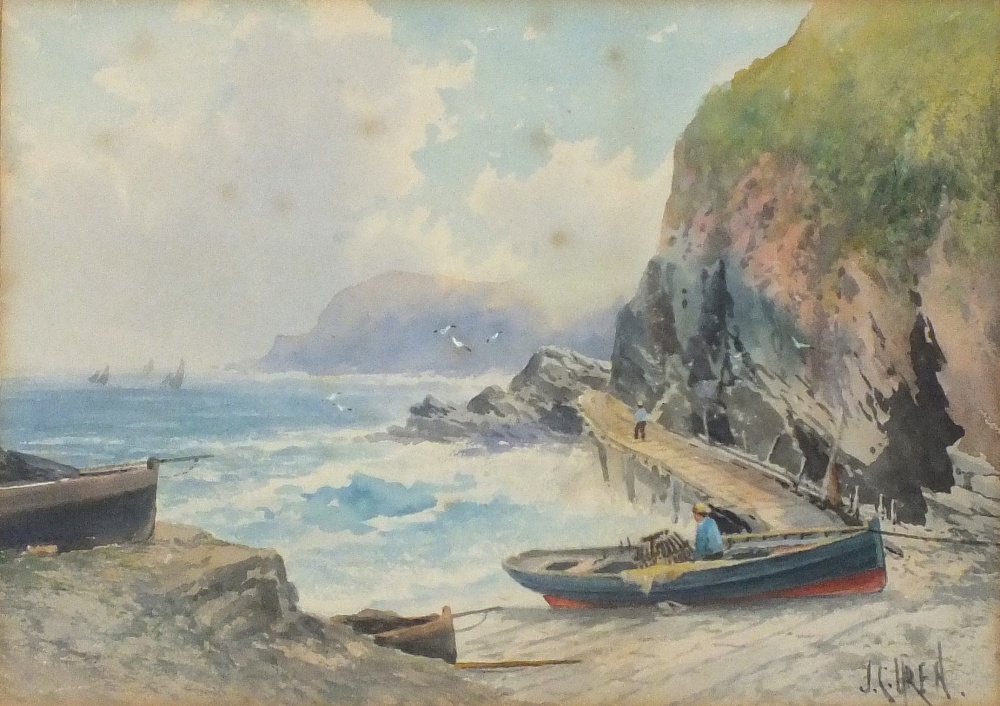 John C Uren (1845-1932): A Lobster Boat by a Slipway in a Cornish Cove