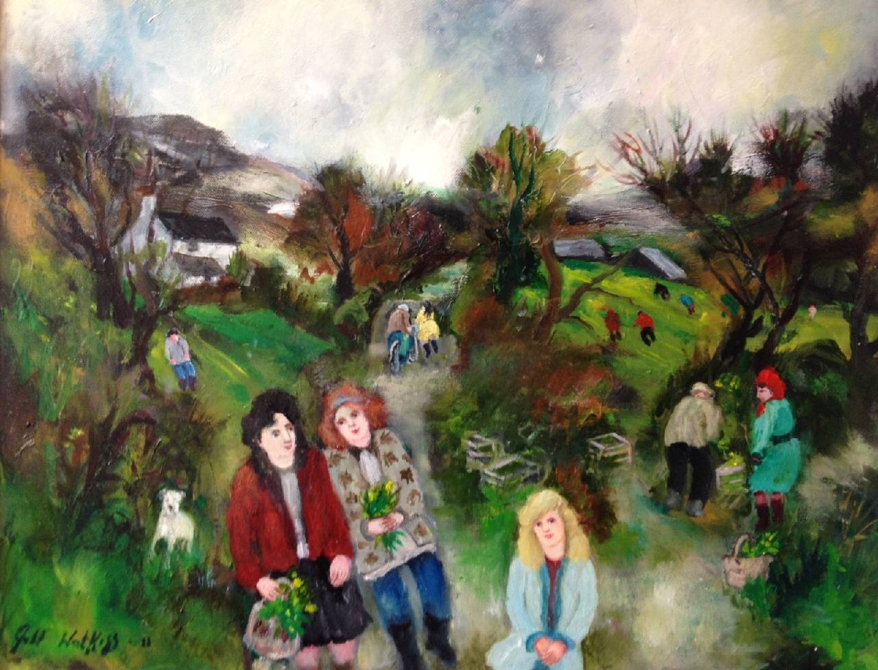 Gill Watkiss (1938-): Home Time, Daffodil Workers West Penwith (2011)