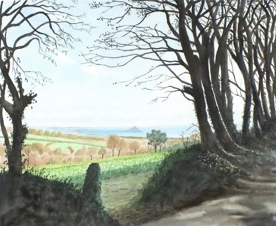 Andrew Watts (1947-): Autumn, Newmill. Vista to the Mount