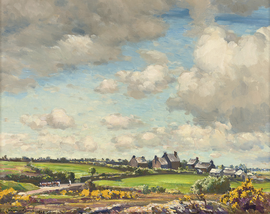 Lamorna Birch (1869-1955): Farmhouses in a Summer Landscape (Undated). Private collection