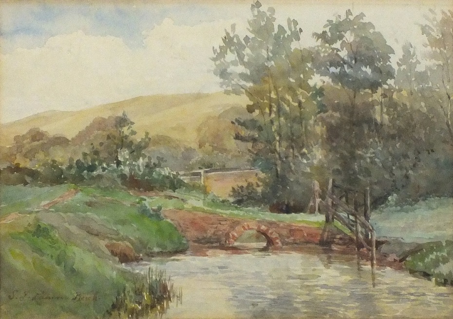 Lamorna Birch (1869-1955): Footbridge across a Meadow Stream (Undated). Private collection