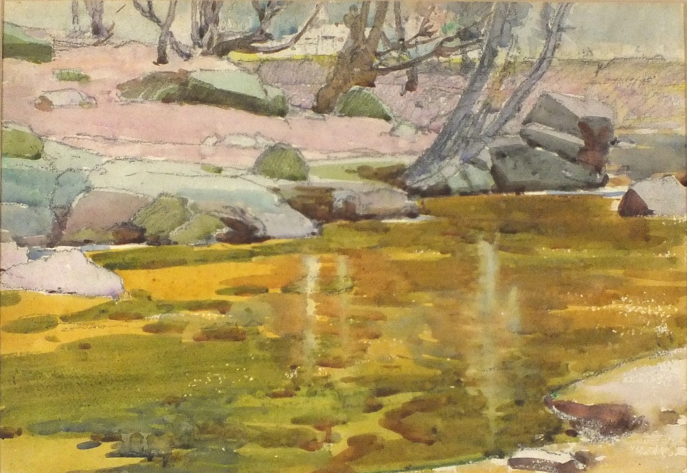 Lamorna Birch (1869-1955): Winter Stream in a Woodland Landscape (Undated)