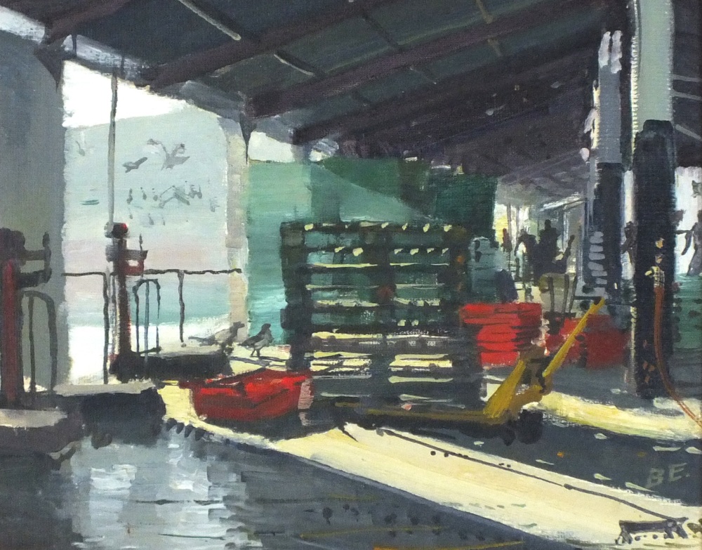 Bernard Evans (1929-): Sunlight, Newlyn Fish Market