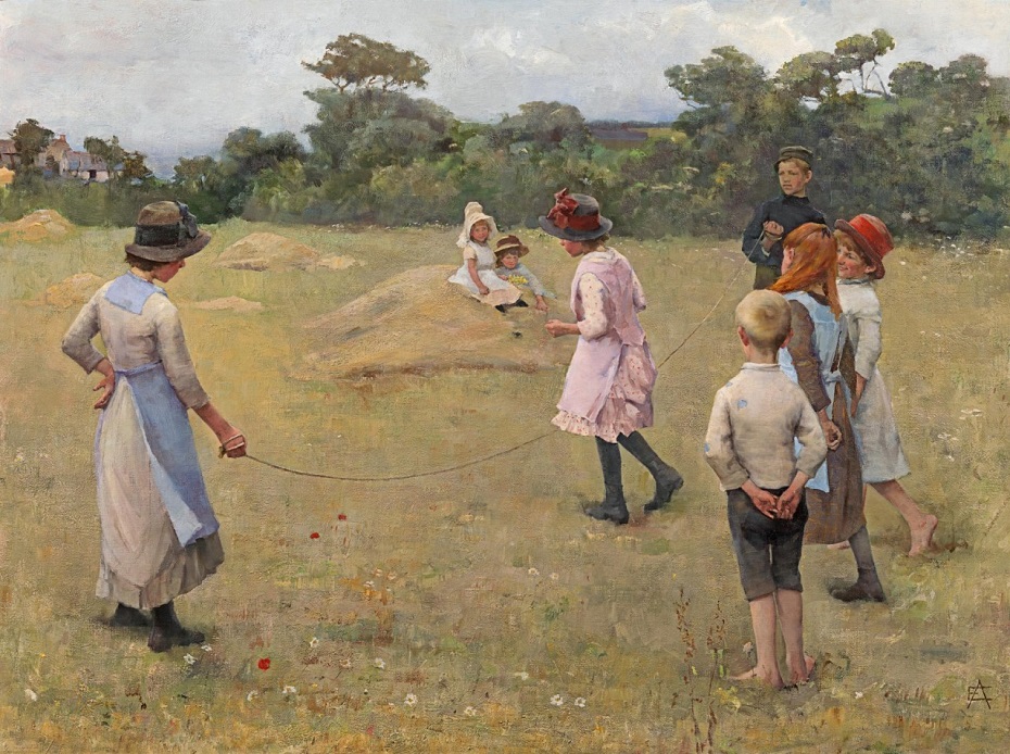 Other games would follow – ‘Old maid’, Hide and seek, Hop-o’-my thumb – each a new revelation of the work, recreations and inner life of children. The painter’s commitment to a strand of subject matter that she would make her own, was however first established with this group of girls and boys, and a simple skipping-rope, in a field in Cornwall.