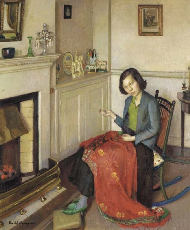 Harold Harvey (1874-1941): The Red Silk Shawl (1932). Private collection