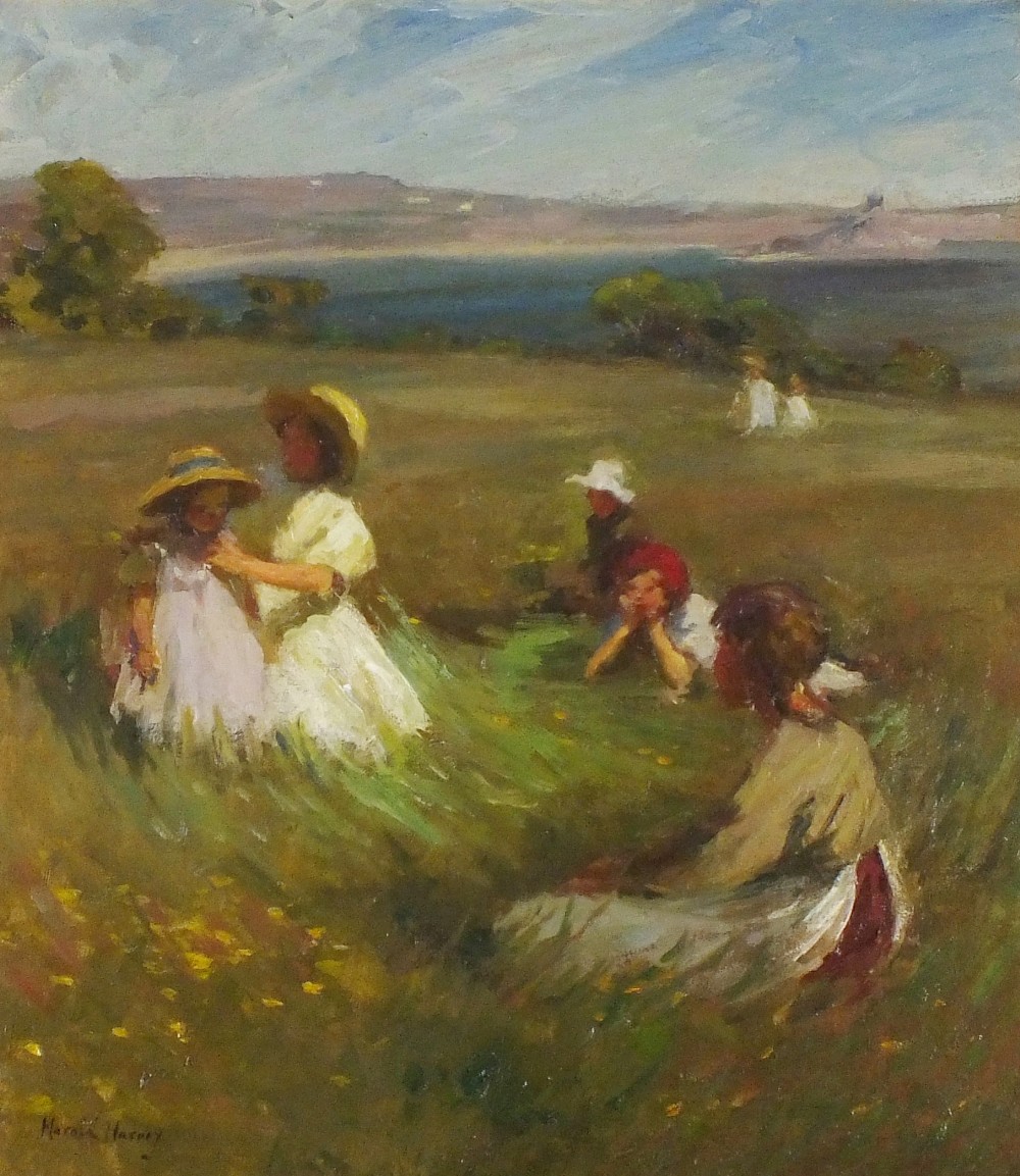 Harold Harvey (1874-1941): The Daisy Chain – Children Playing in a Meadow above Mount’s Bay (Undated). Private collection
