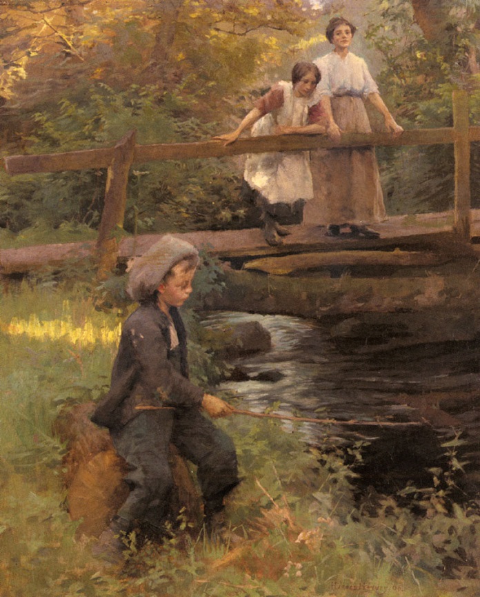 Harold Harvey (1874-1941): Fishing in a Forest Stream (Undated). Private collection