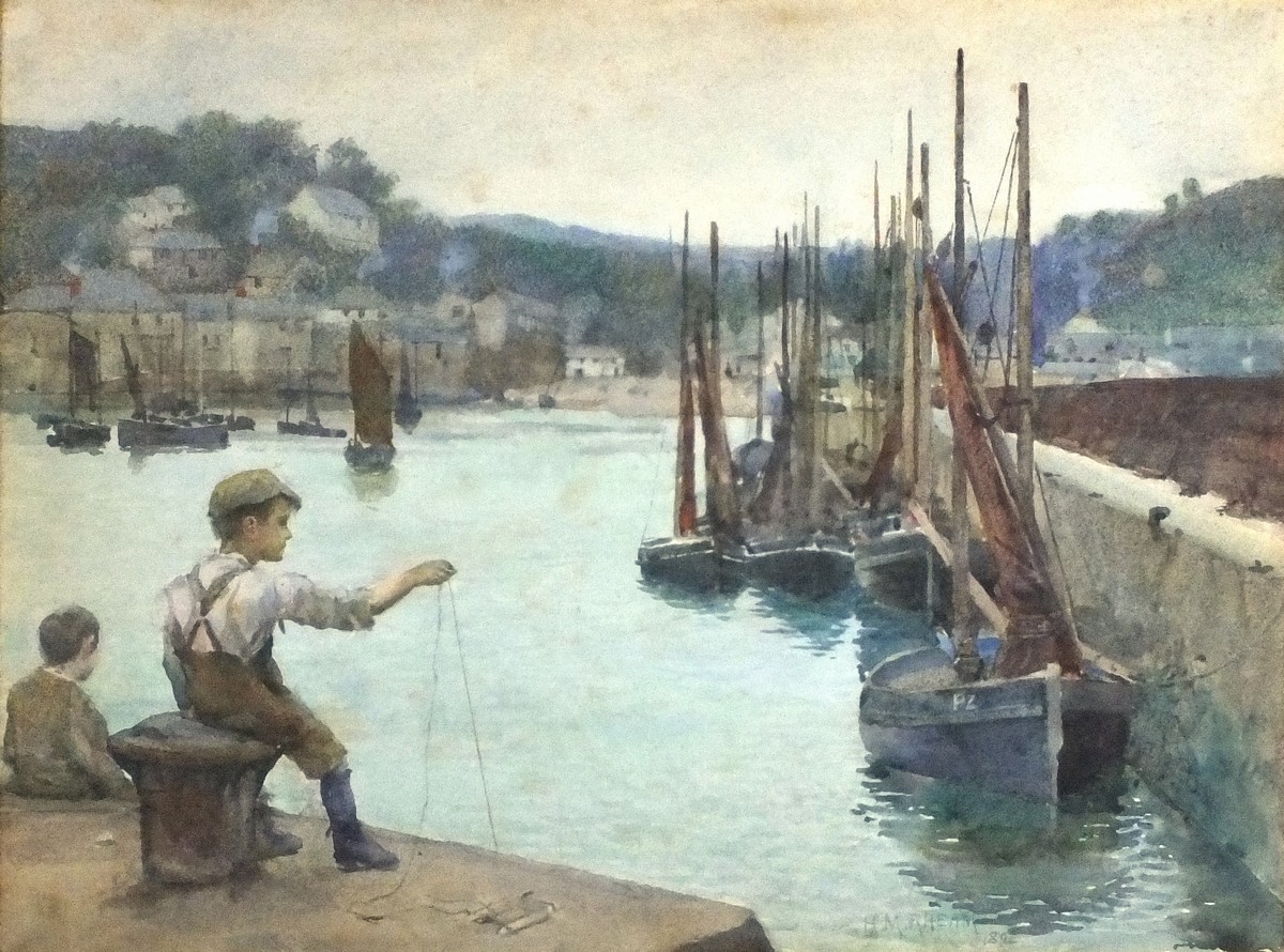 Henry Meynell Rheam (1859-1920): Little Boy Fishing from the Quay at Penzance Harbour (1892). Private collection