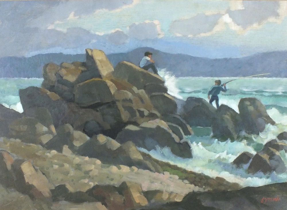 Ken Symonds (1927-2010): Boys Fishing off a Rocky Headland (Undated)