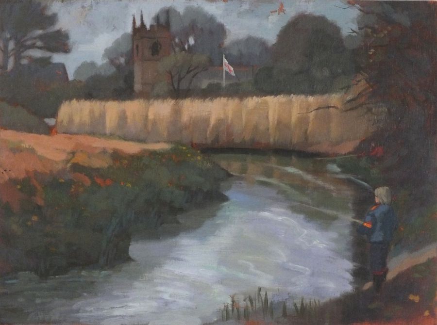 Ken Symonds (1927-2010): St Erth Church & Boy Fishing (Undated). Private collection